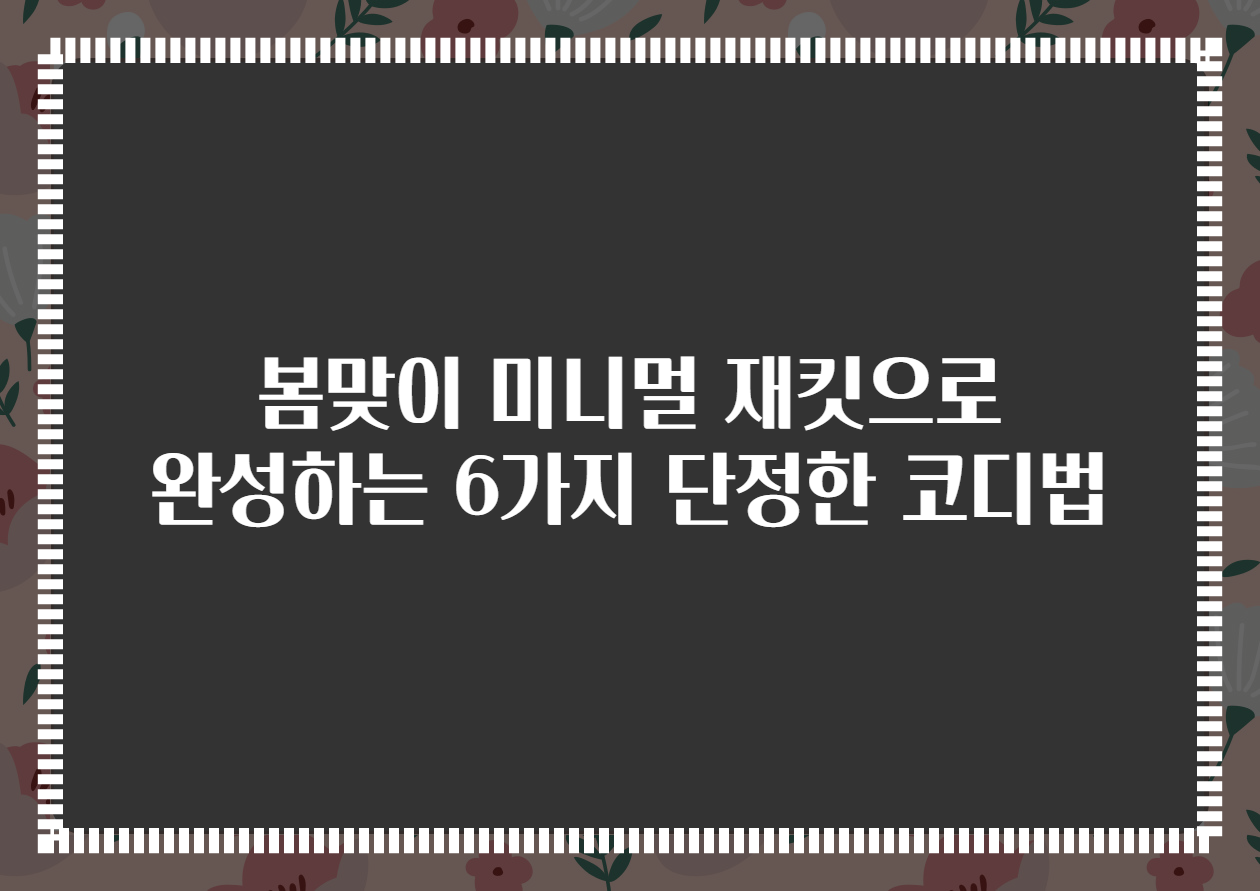 🌼 봄이 찾아왔습니다! 날씨가 따뜻해지고 꽃이 피어나면서 우리의 스타일에도 변화가 필요해요. 이번 시즌, 특별히 주목할 아이템은 바로 미니멀 재킷입니다. 이 재킷은 심플하면서도 세련된 매력을 가지고 있어 어떤 스타일과도 잘 어울리죠. 그럼, 봄을 맞아 미니멀 재킷을 활용해 단정하면서도 멋진 코디법을 알아볼까요? 👗